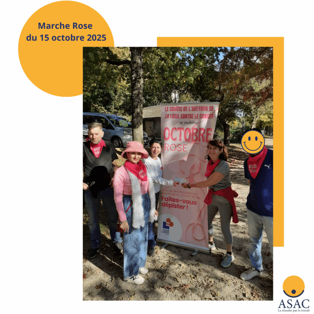 Marche Rose ASAC 22 Oct 2025 admin12 Atelier Accompagnement, evenement Commentaires fermés sur Marche Rose ASAC « 𝐑𝐞𝐭𝐨𝐮𝐫 𝐬𝐮𝐫 𝐥𝐚 𝐌𝐚𝐫𝐜𝐡𝐞 𝐑𝐨𝐬𝐞 𝐝𝐮 𝟏𝟓 𝐨𝐜𝐭𝐨𝐛𝐫𝐞 « Me 15 octobre, l’ASAC s’est mobilisée le temps d’un atelier « 𝐌𝐚𝐫𝐜𝐡𝐞 𝐑𝐎𝐒𝐄 ».Cet engagement de toutes et de tous nous a permis de soutenir Ligue Contre Le Cancer Aveyron.Merci pour votre implication Merci Pascale Roques, Vice-Présidente de l’ASAC qui nous a initié à la marche nordique.Merci à Bénédicte Castella, Coordinatrice Ligue contre le cancer Aveyron #CancerDuSein #OctobreRose
